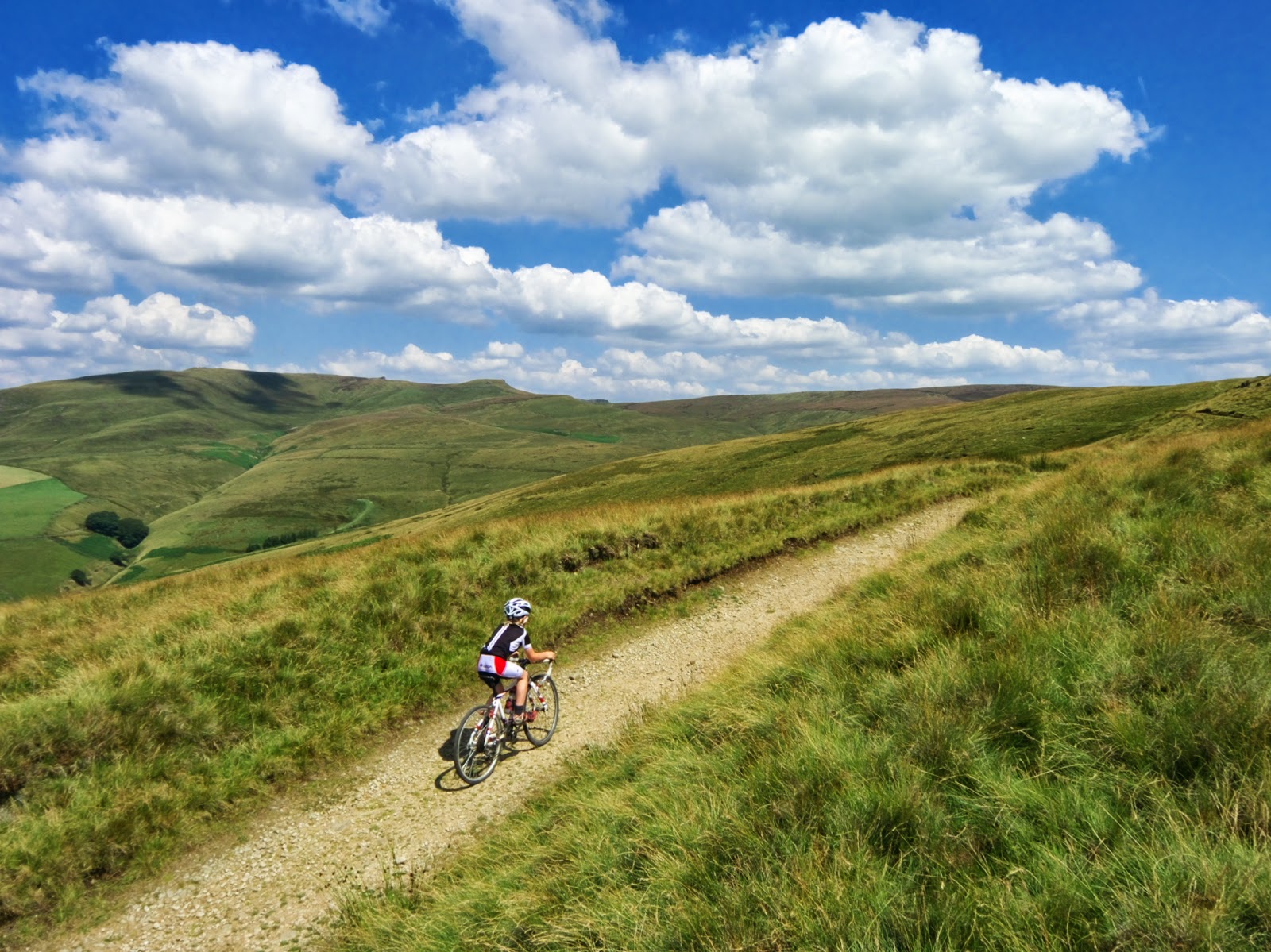 From the road crossing there is a slight climb. I'd told him, if he made the top of it, before any other of the cyclists, he on his mountain bike would have the upper hand against those (training for the 3 Peaks) on their cyclocross bikes on the final descent.